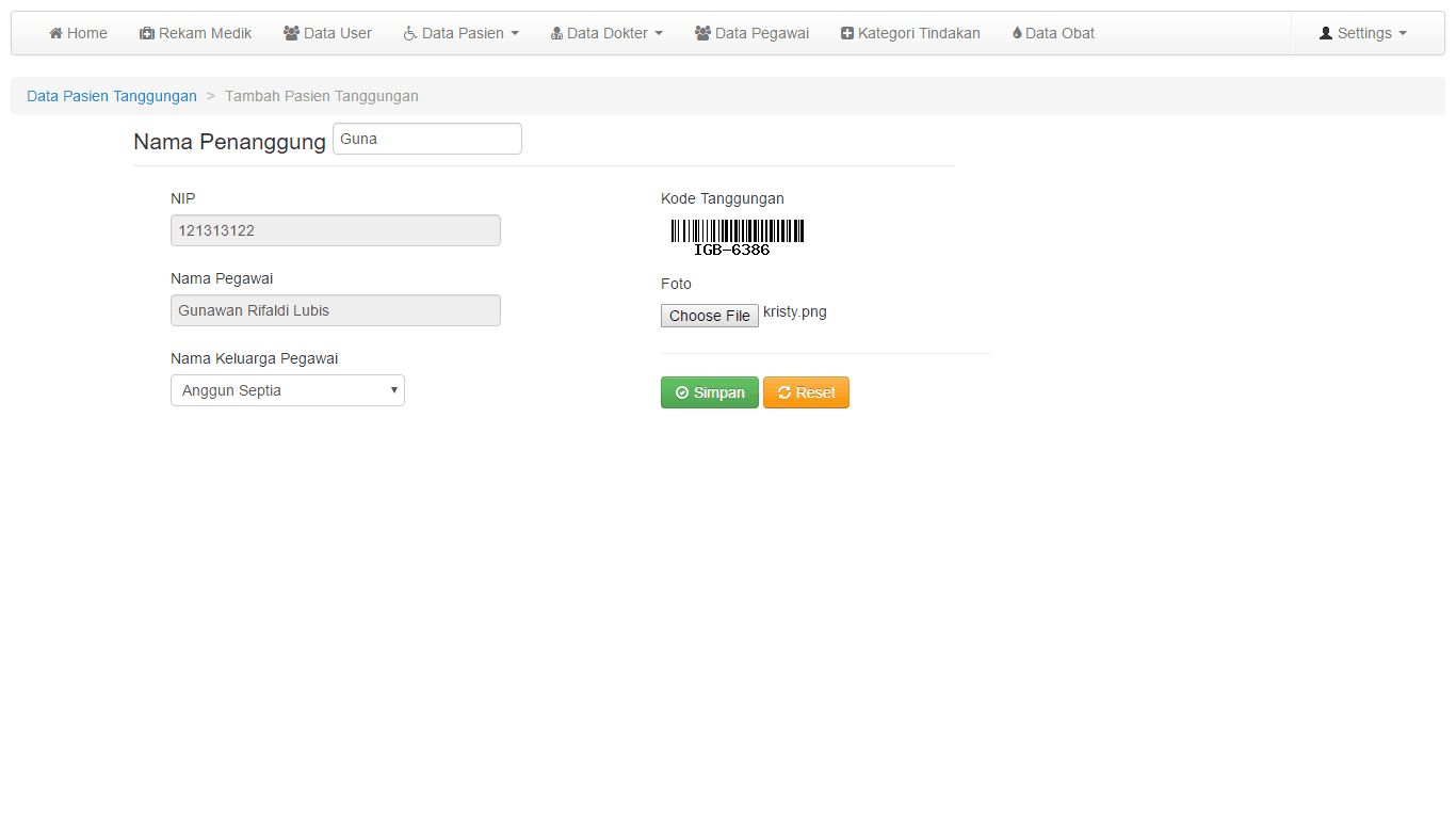 11. Daftar pasien dari data pegawai, dilengkapi dengan nomor barcode yang akan menjadi nomor identitas pasien.